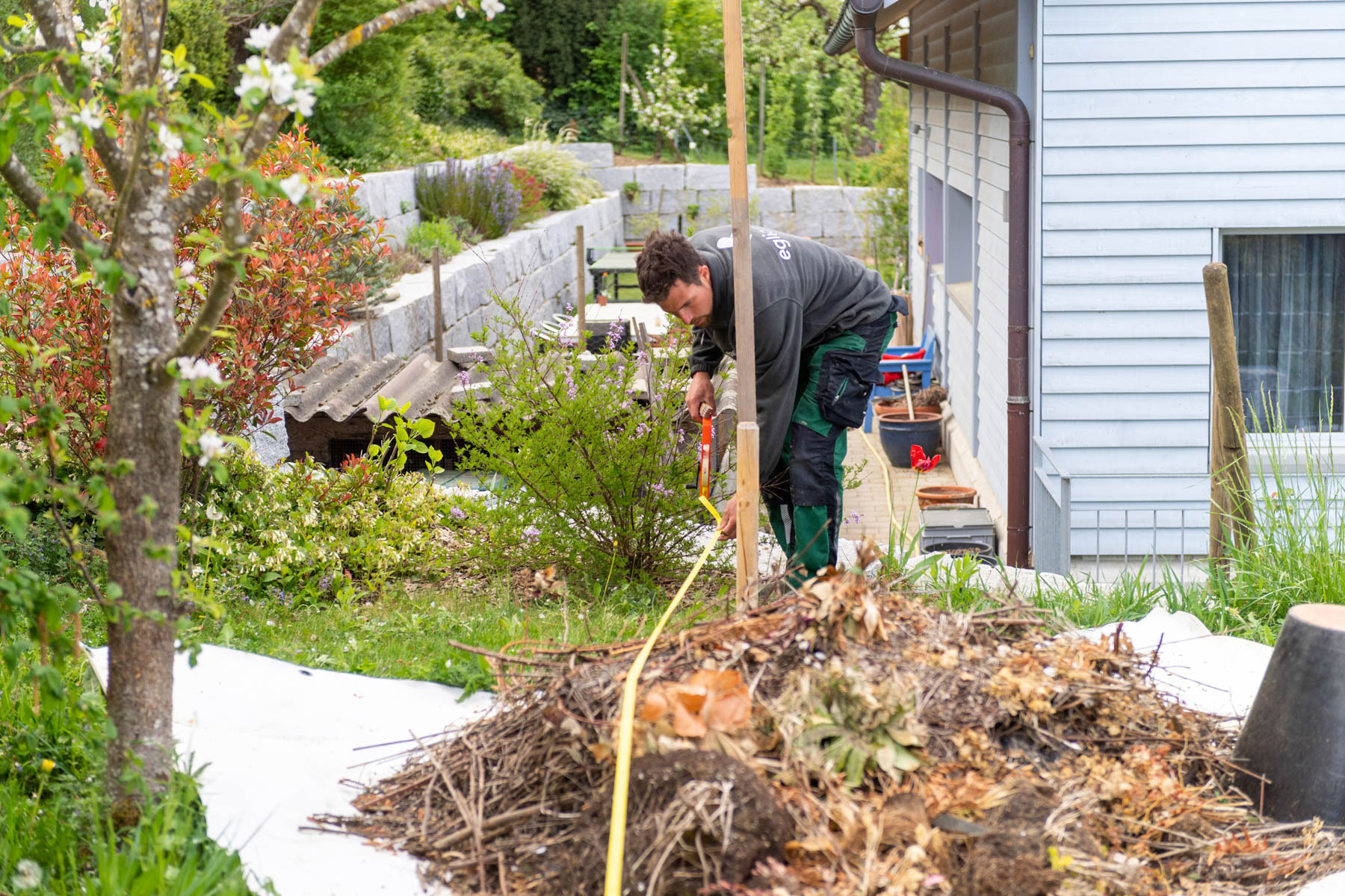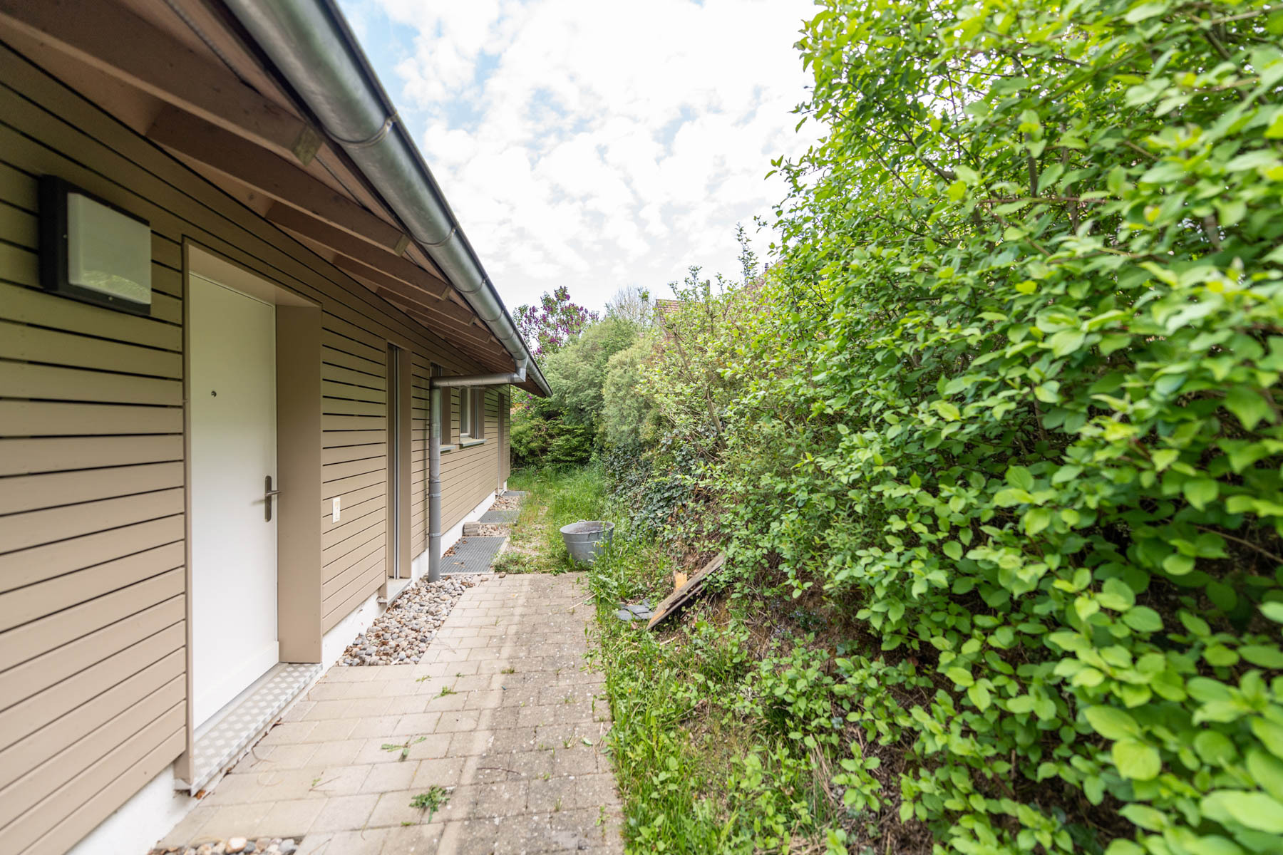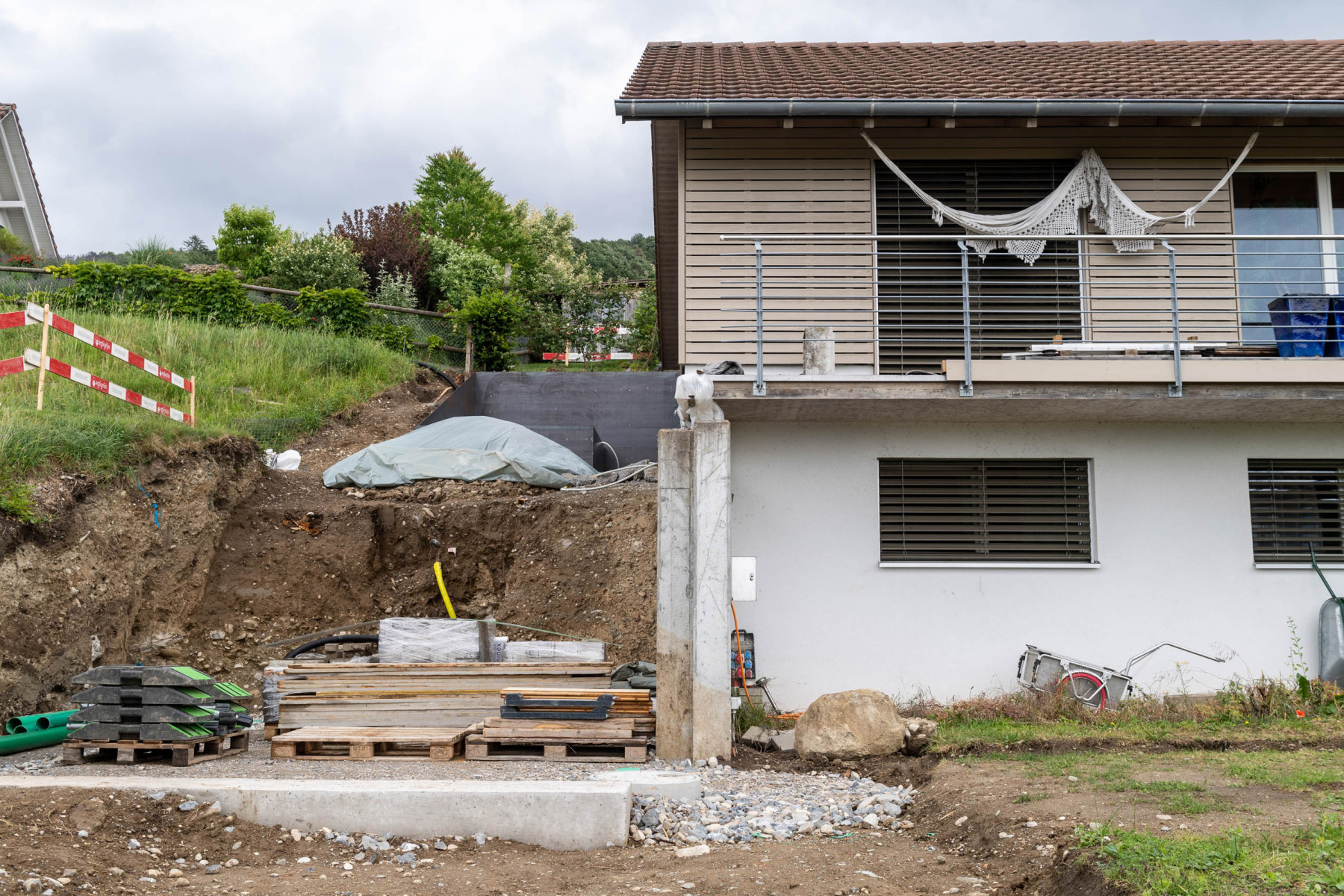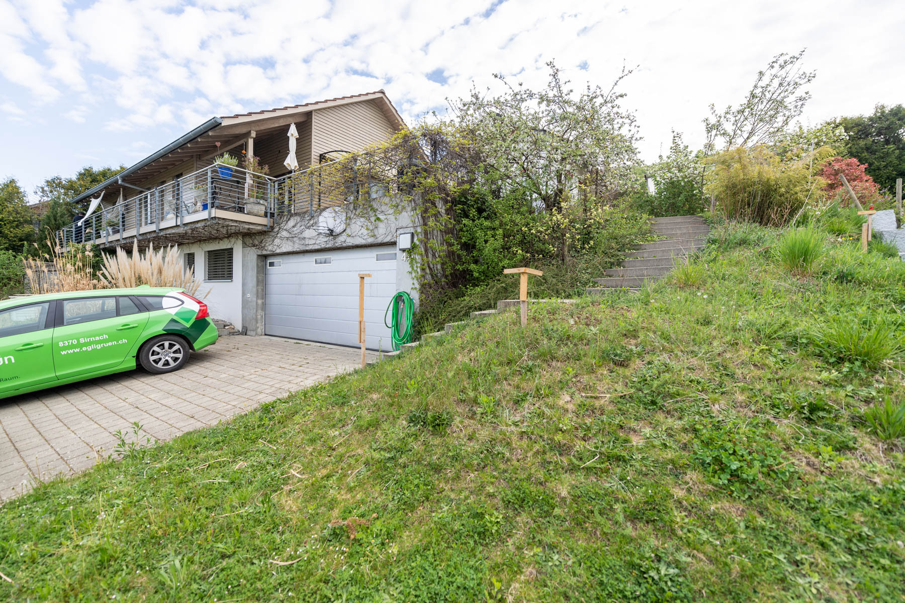 Das bestehende Grundstück konnte durch die Geländebeschaffenheit wenig genutzt werden und die ‚Bike-begeisterten‘ Besitzer wünschten sich zusätzlichen Platz für ihre Fahrräder und eine kleine Werkstatt. Ein charmanter Garten und eine besser bewirtschaftbare ‚Rückseite‘ waren ebenfalls ein grosses Anliegen.