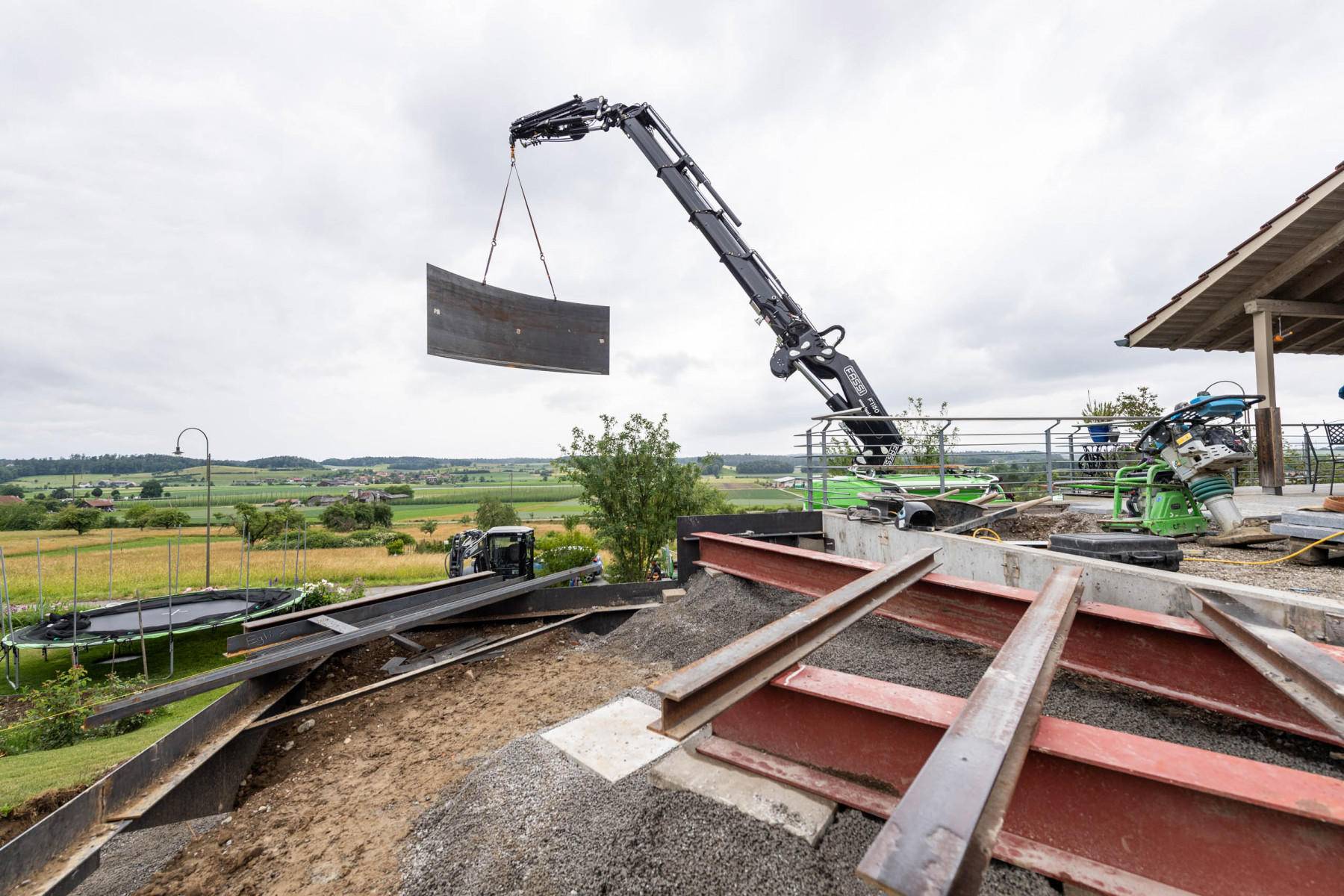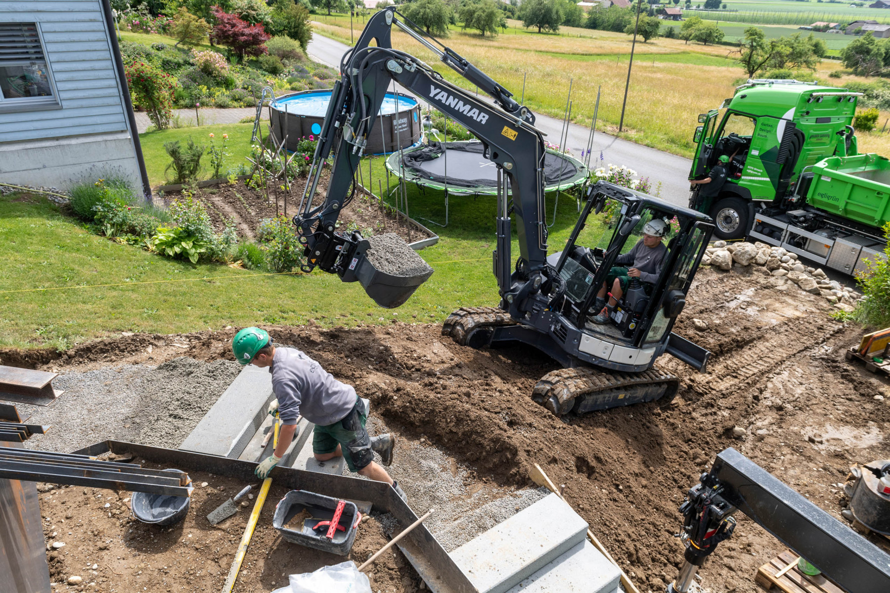 Die Arbeiten sind in vollem Gange und die ‚alte‘ Umgebung nahezu verschwunden. Die Konturen der neuen Gestaltung zeigen sich und Schritt um Schritt gehts vorwärts.