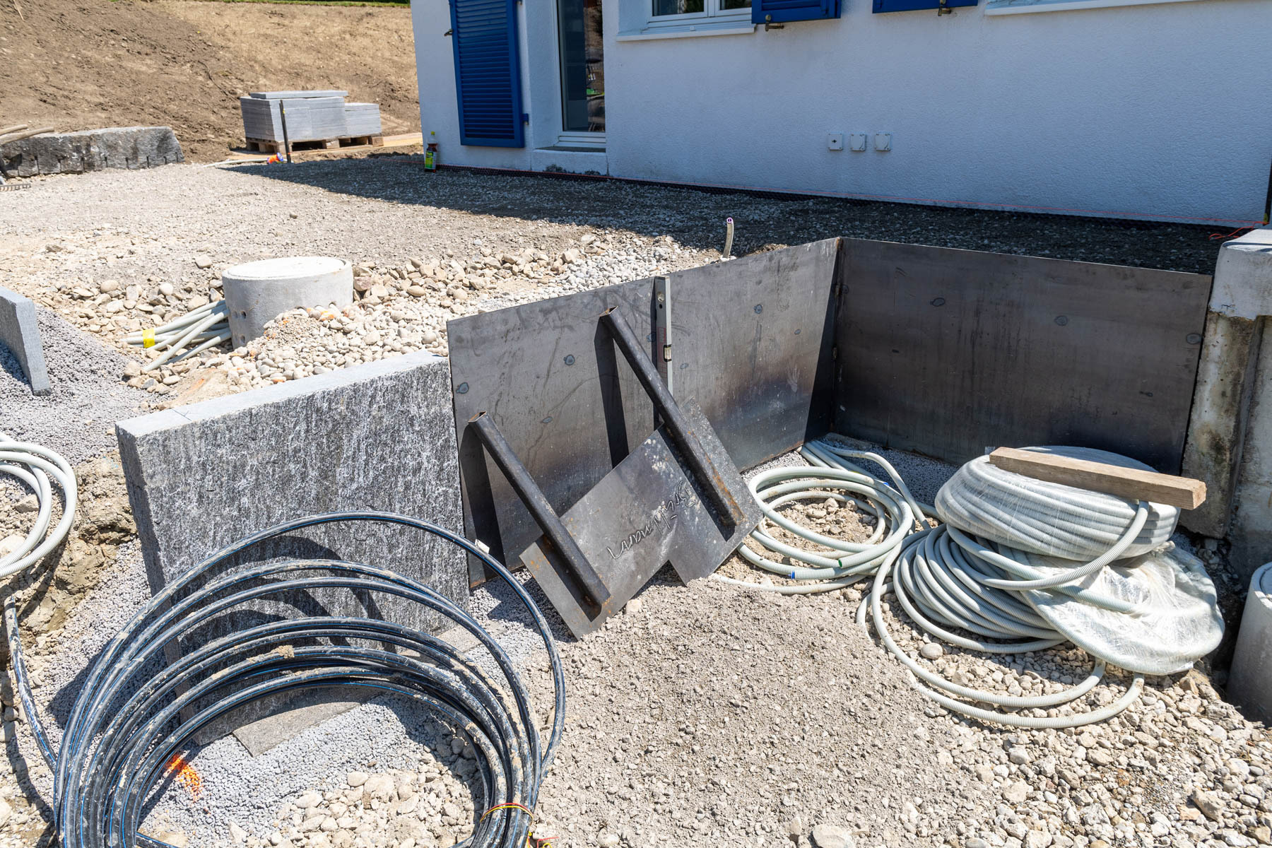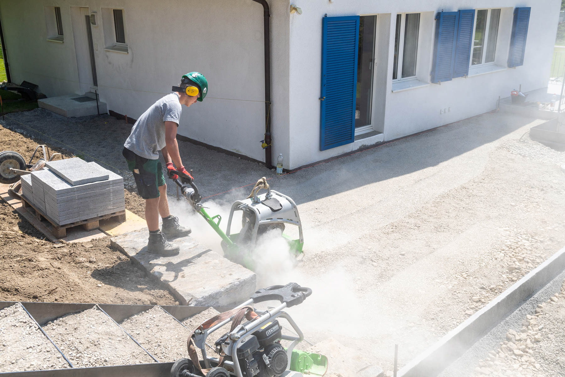 Die Umbauarbeiten sind im Gange. Abbrucharbeiten und erste Schritte zur Neugestaltung sind erfolgt. In der neuen Terrassierung werden kräftige Eiben gepflanzt. Ohne Zweifel eine schweisstreibende Arbeit.