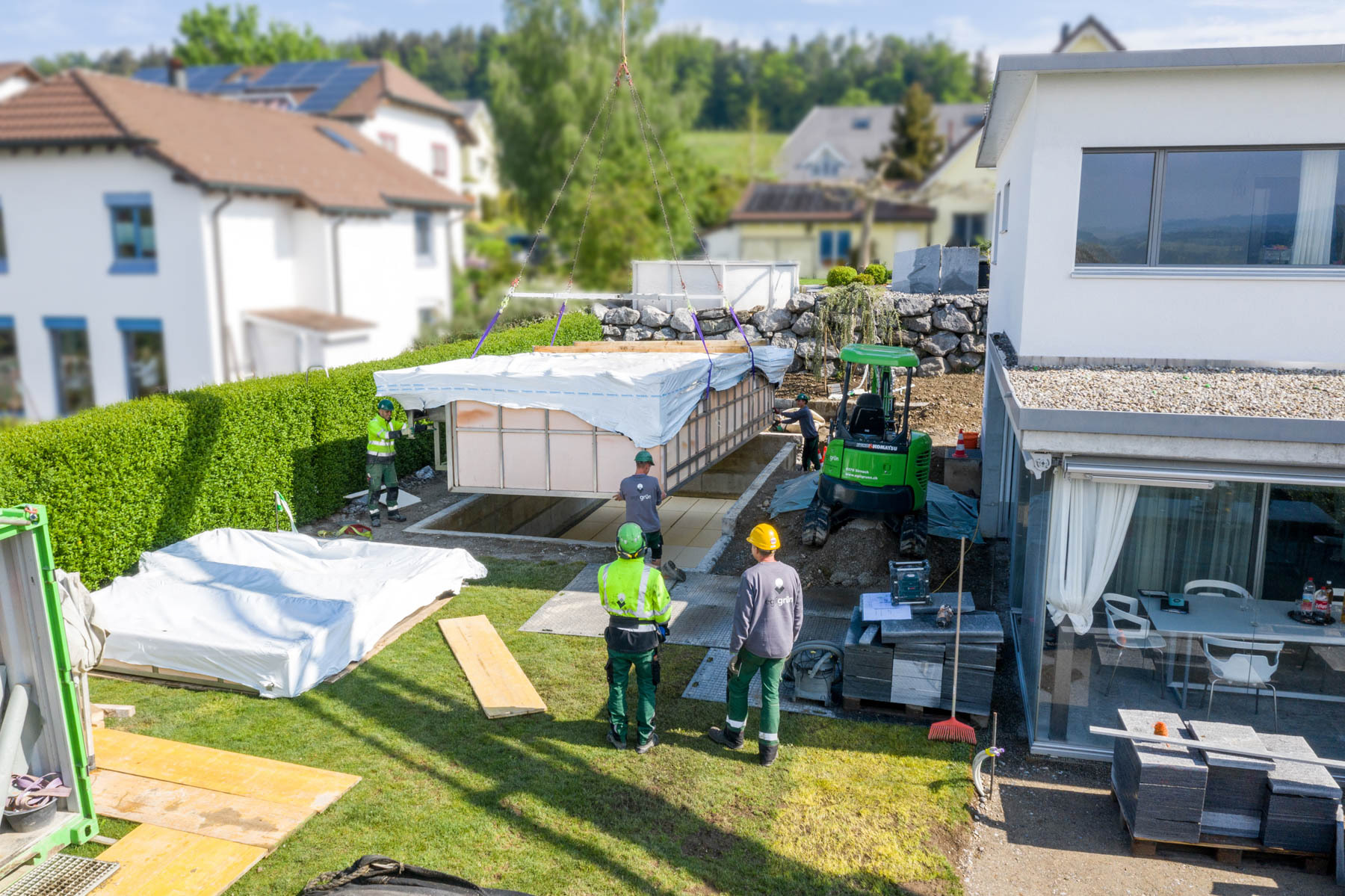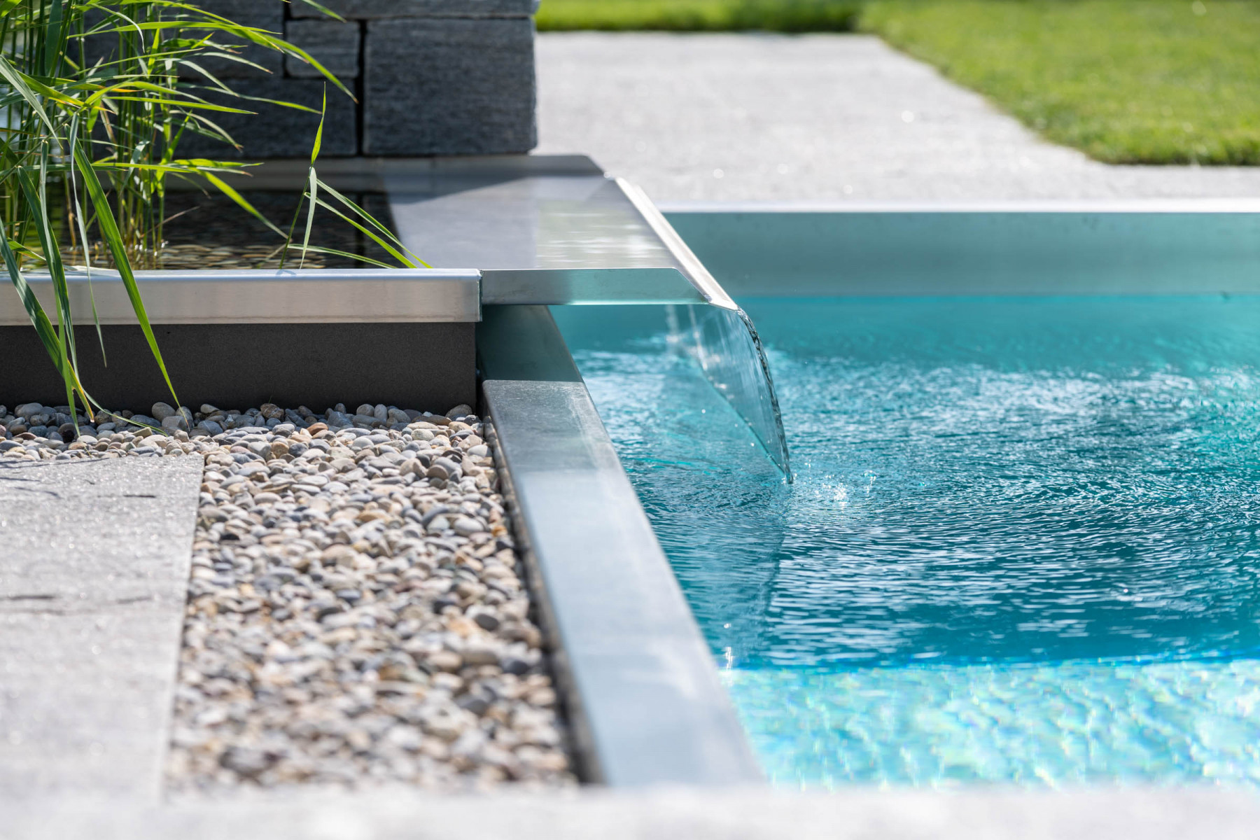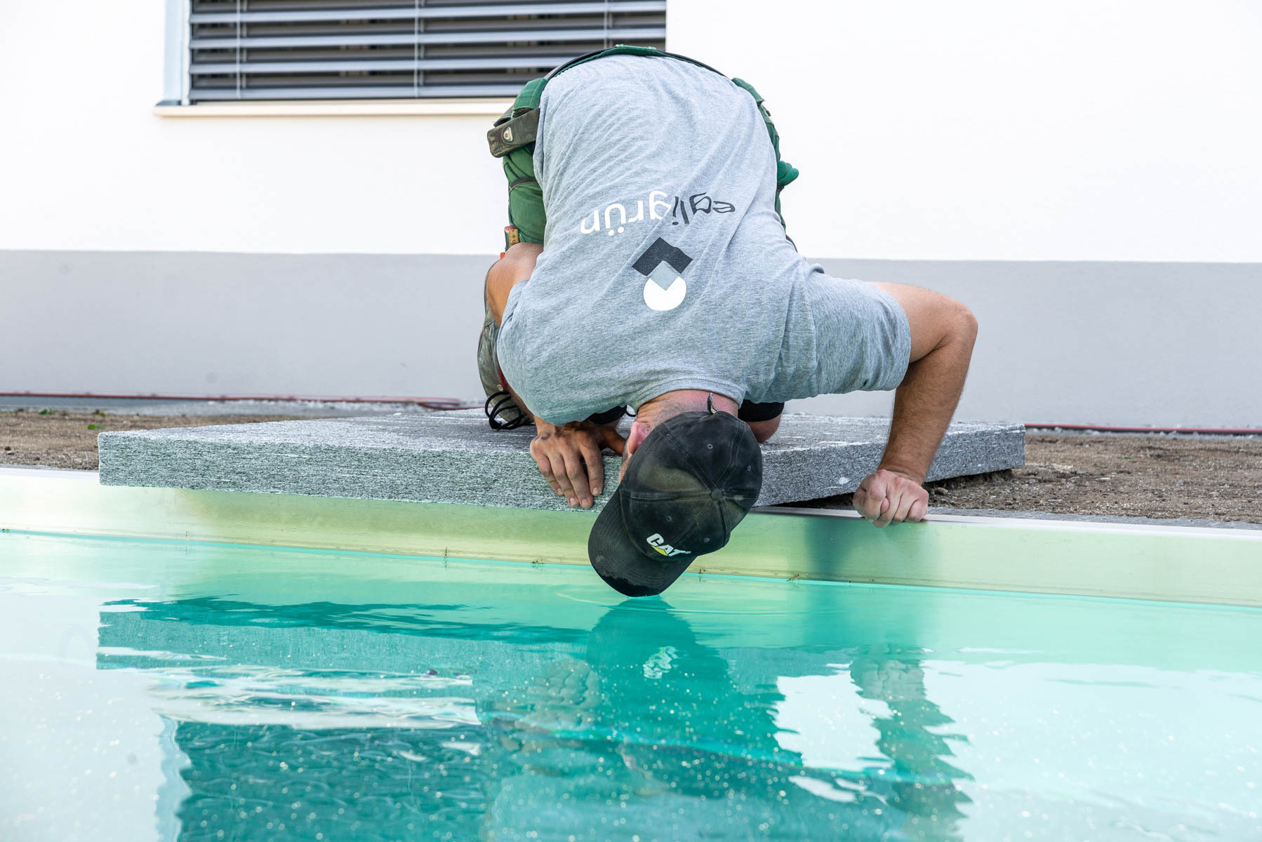Auf dem Papier ist der neue Chromstahpool bereits eingebaut und die Bauherrschaft kann es kaum erwarten in das erfrischende Nass einzutauchen.