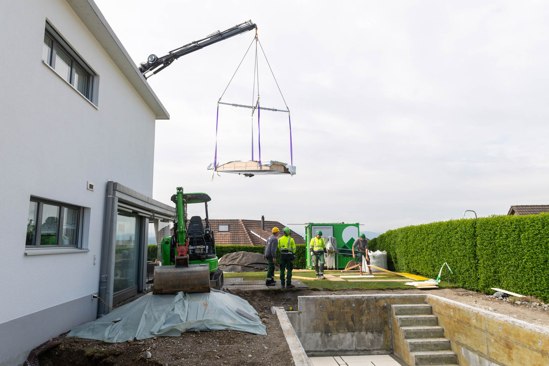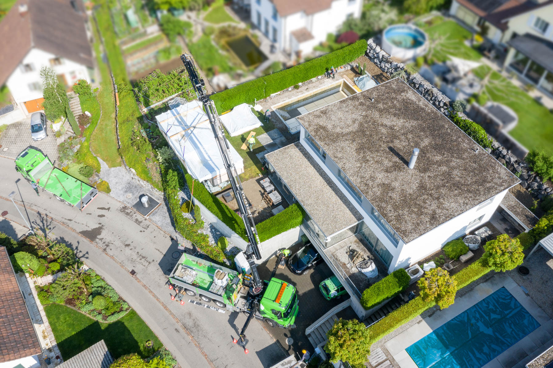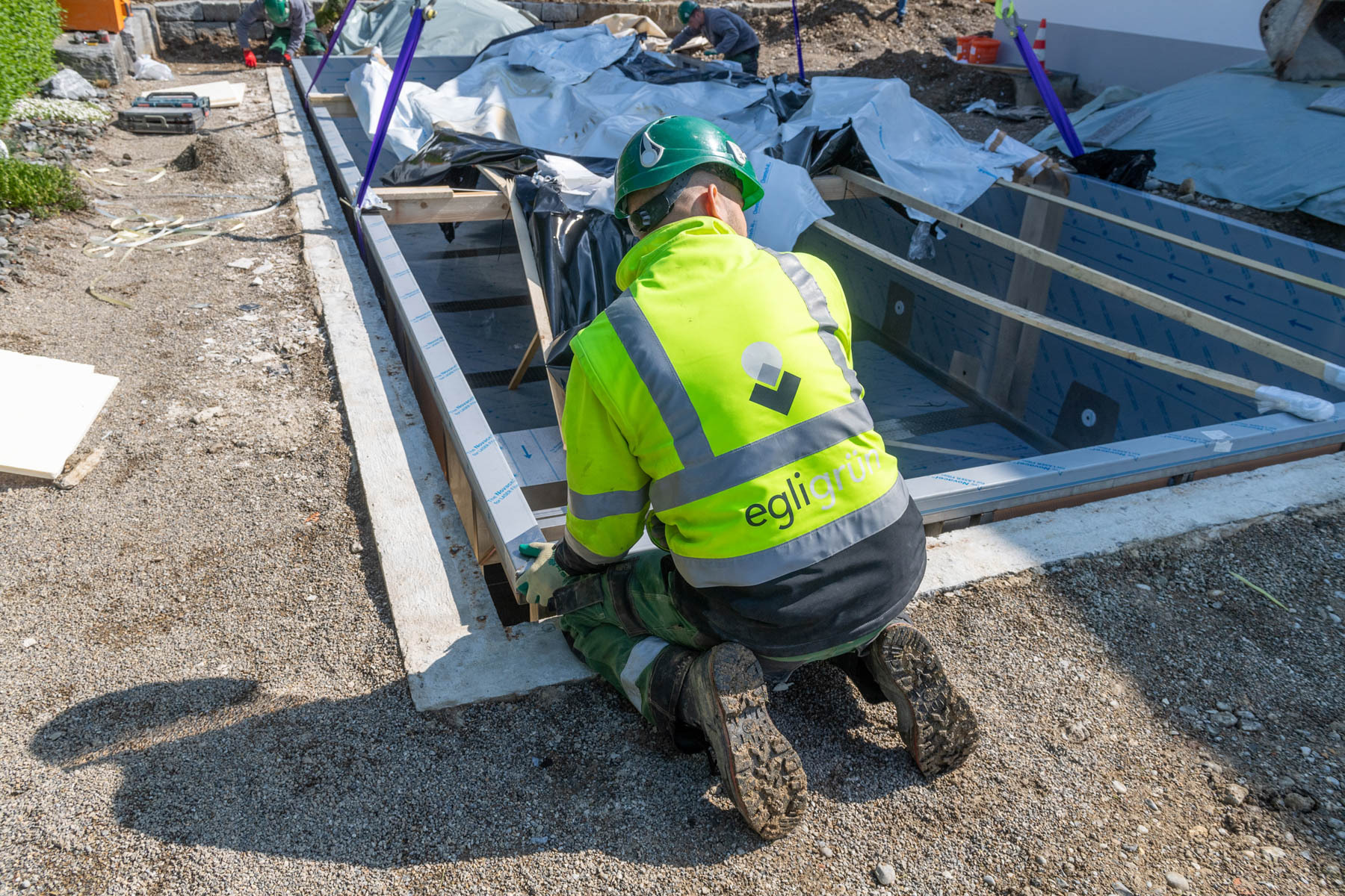Auf dem Papier ist der neue Chromstahpool bereits eingebaut und die Bauherrschaft kann es kaum erwarten in das erfrischende Nass einzutauchen.