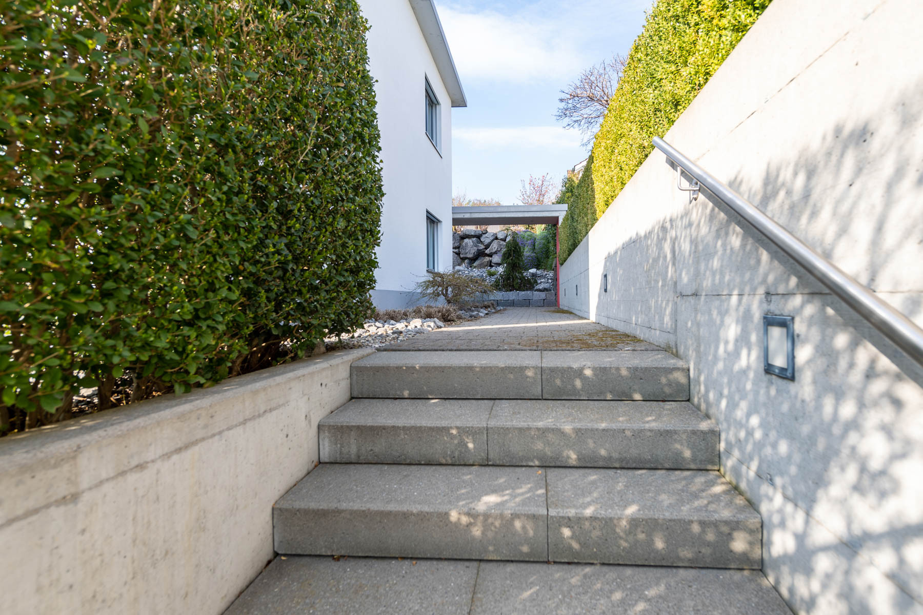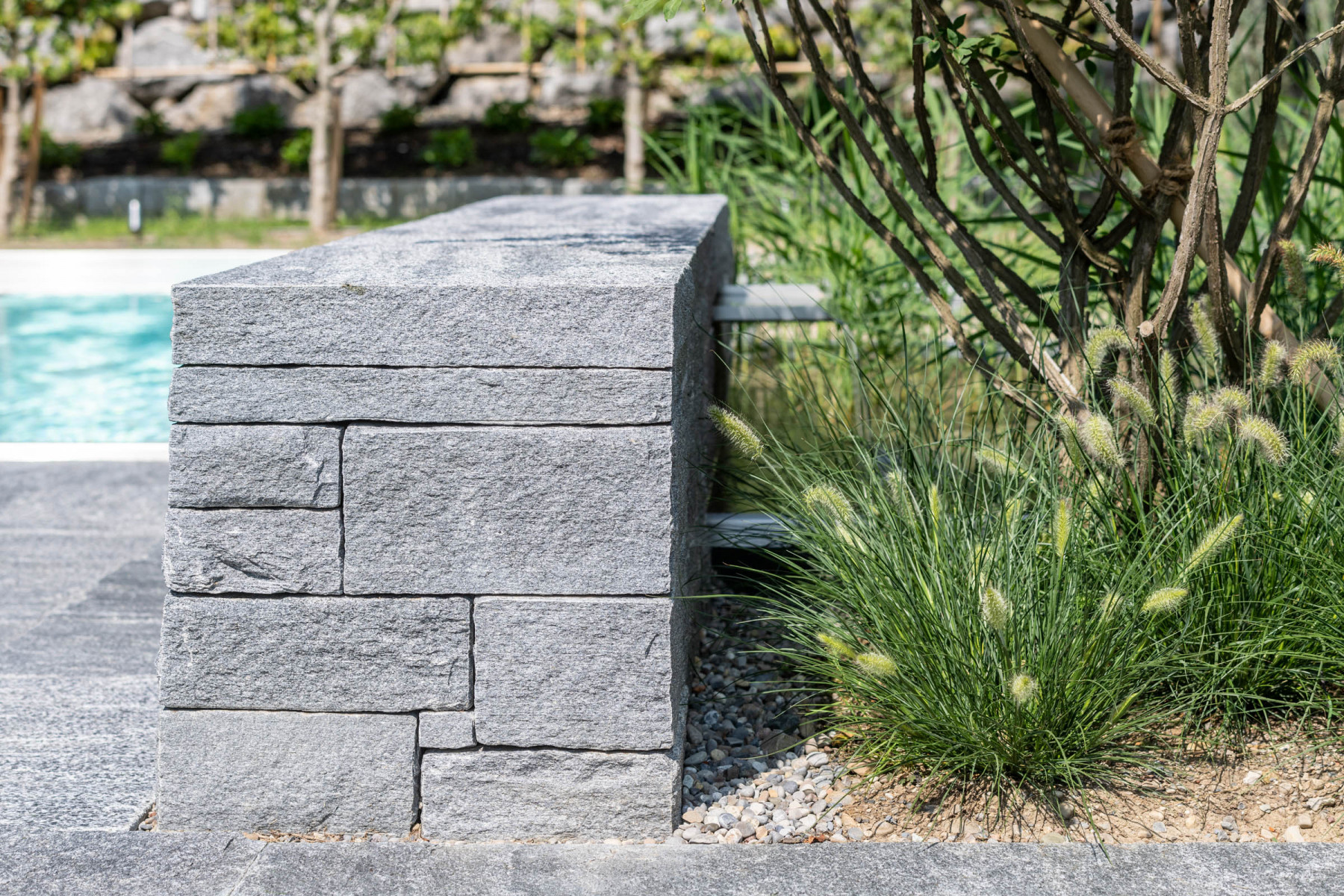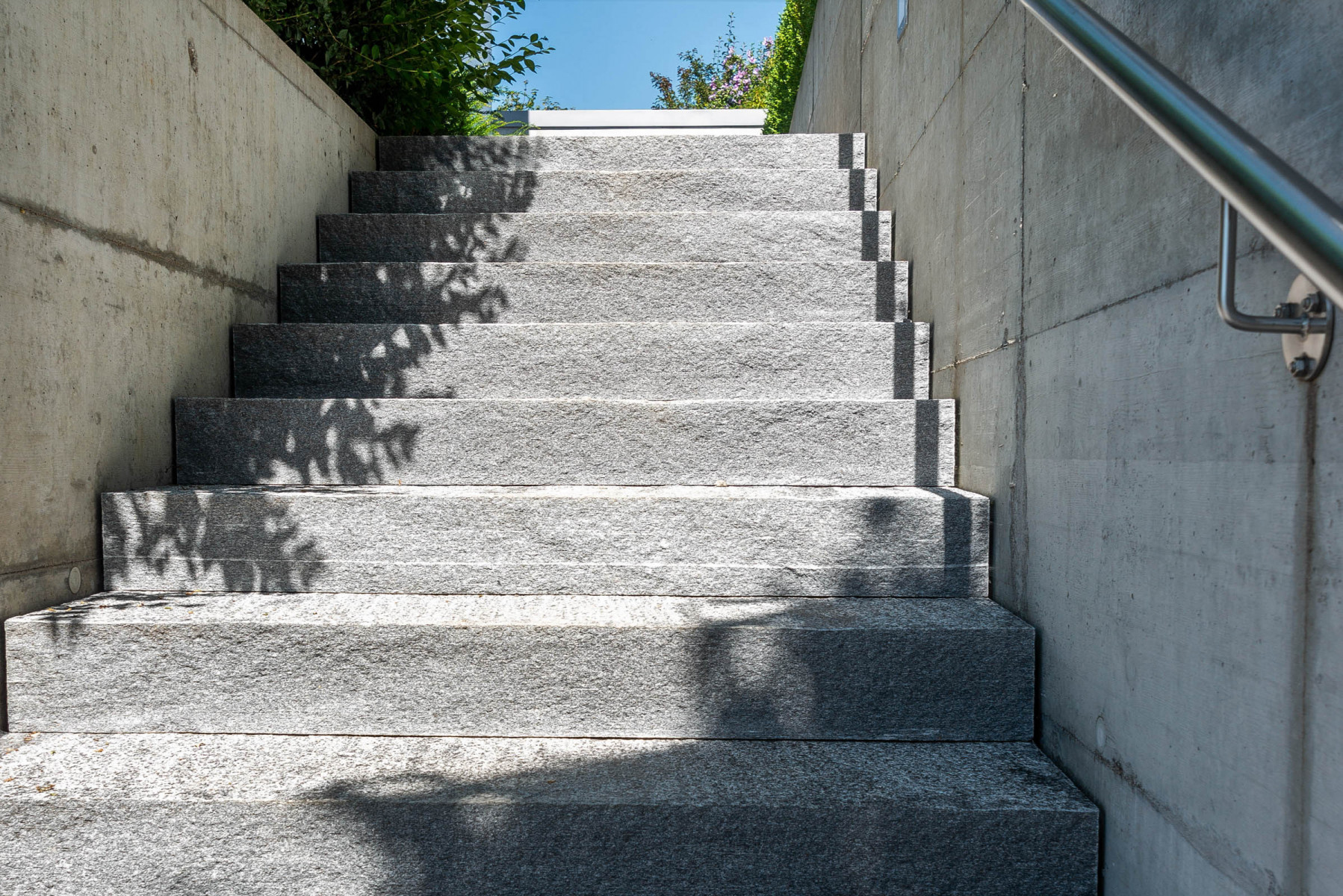 Beläge und Treppen erhalten eine natürlich edle Ausstrahlung durch die Verwendung von Calanca-Gneis.
