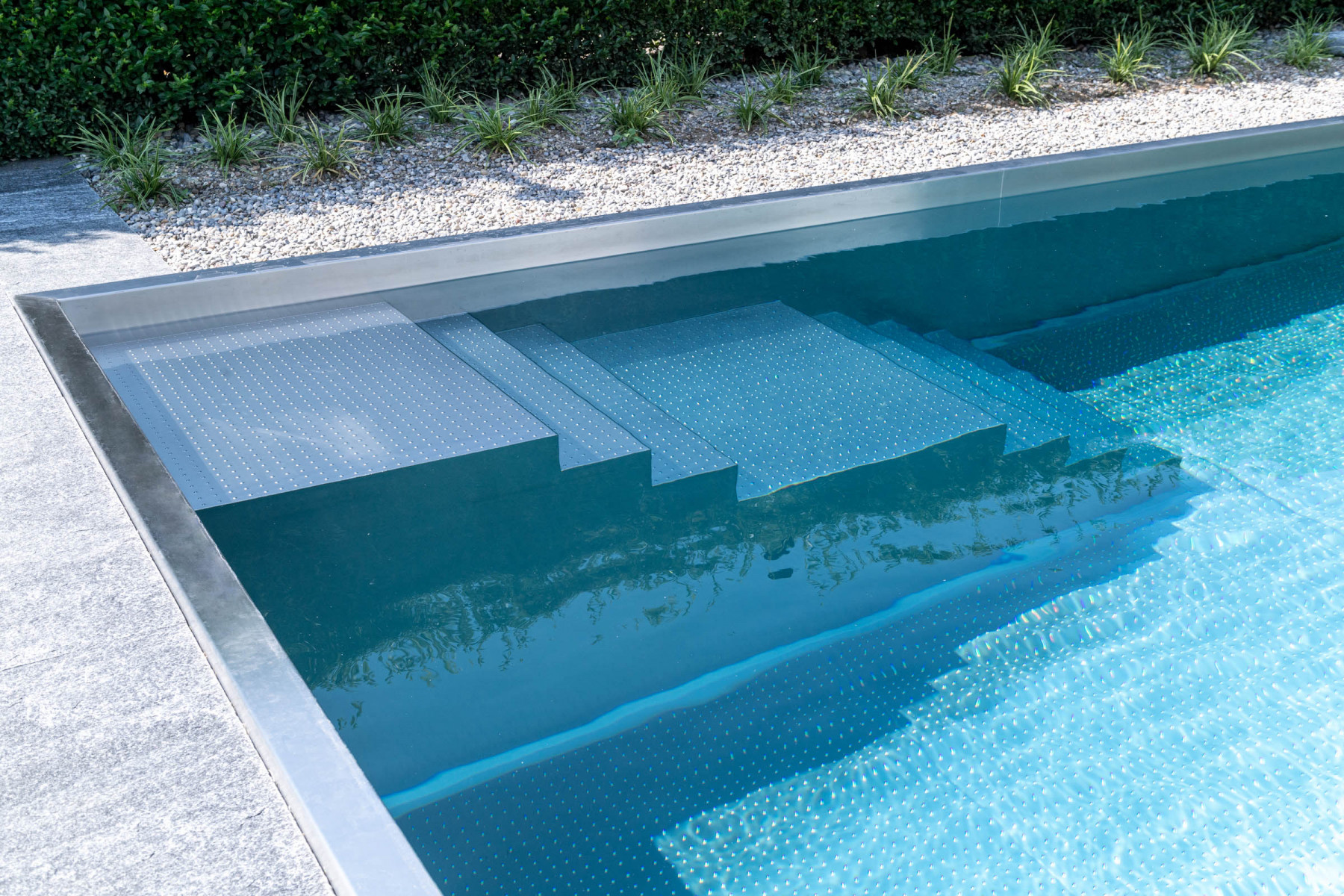 Aus ökologischen und wirtschaftlichen Gründen wurde das neue Chromstahlbecken in die Betonwanne des alten Schwimmbades gesetzt. Voraussetzung dafür – präzise Massarbeit bei der Anfertigung!