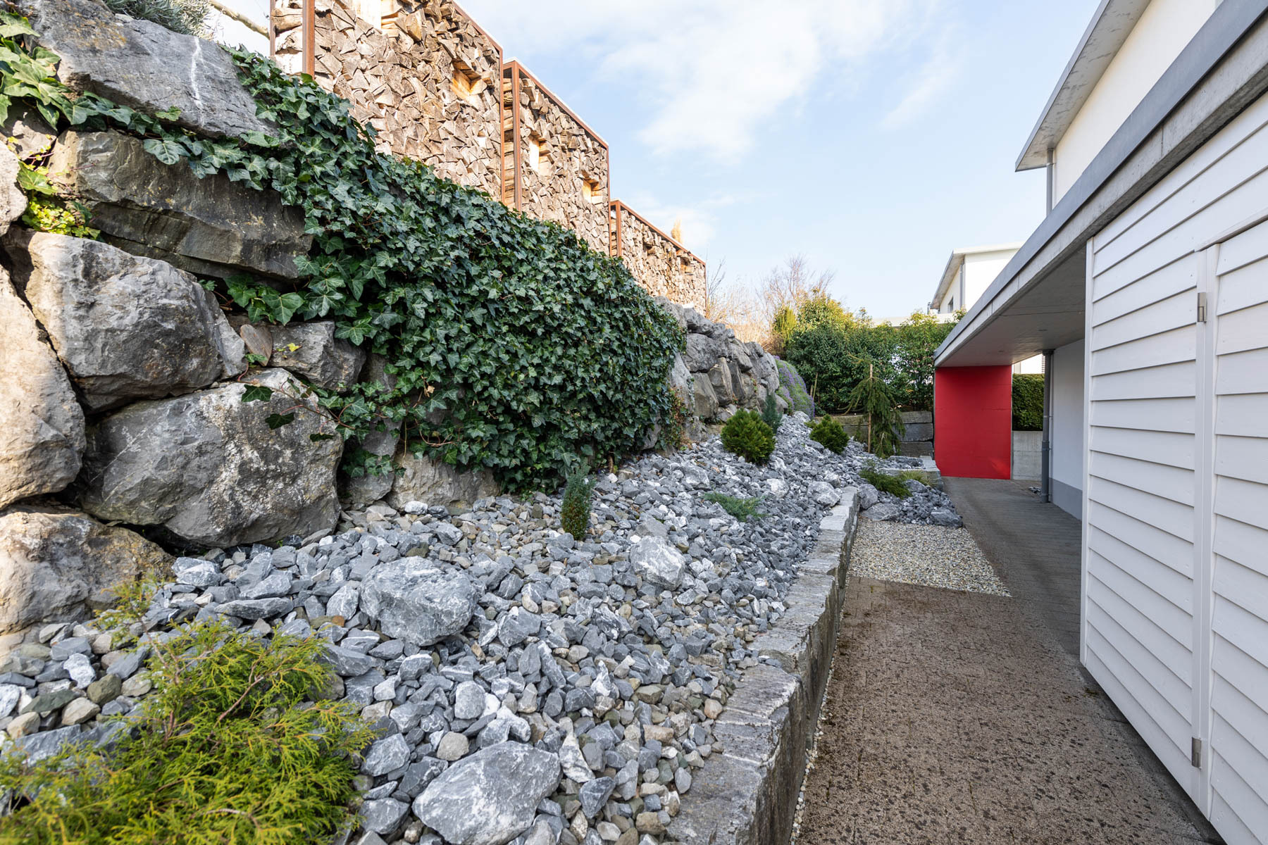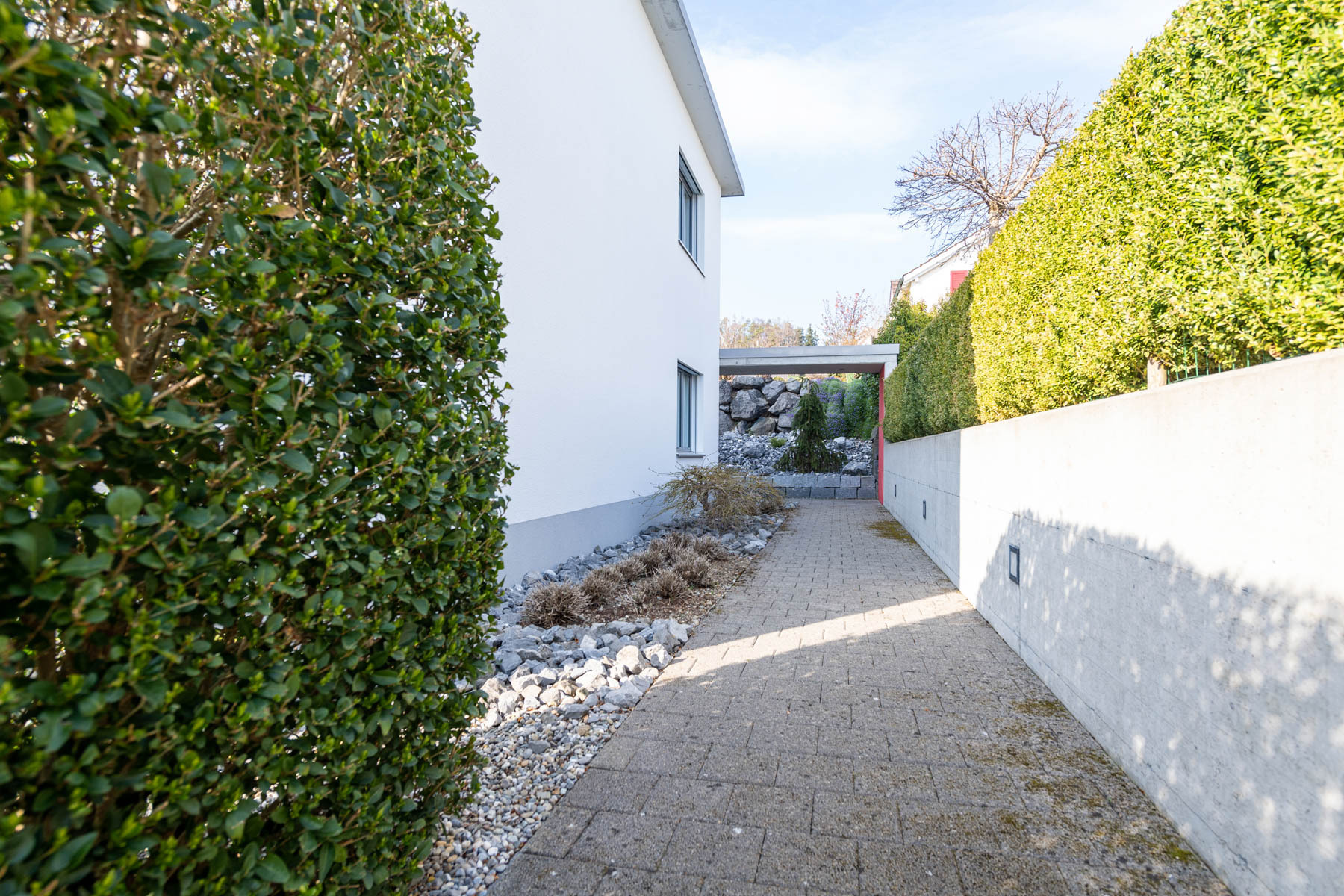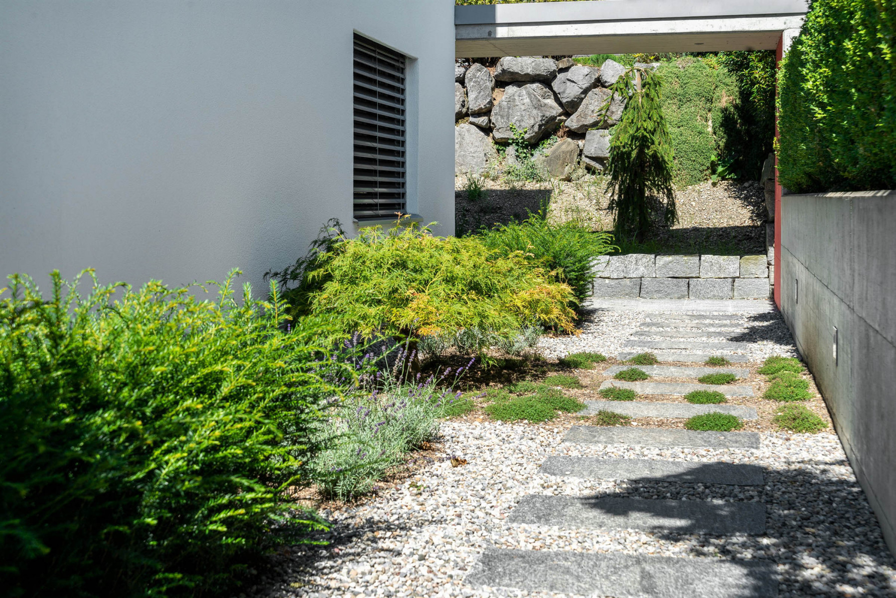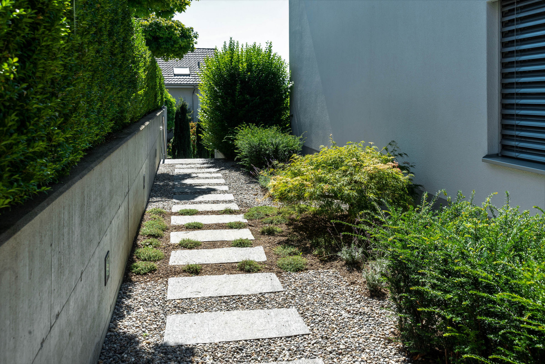 Der Umschwung ums Haus gewinnt an Atmosphäre und durch Spaliere und Solitärgehölz entsteht ein neues Raumgefühl.
